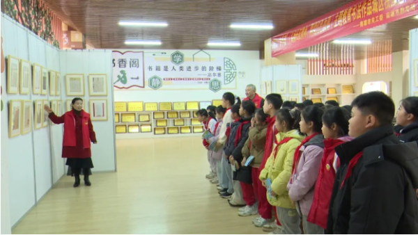 在活动现场的巡回展区,集中展示了市级硬笔书法大赛中以“弘扬长征精神、赓续红色血脉”为主题的获奖作品,老师细心讲解书法技巧与作品内涵,引导同学们在横竖撇捺间感受汉字之美,同学们驻足观看,认真聆听。