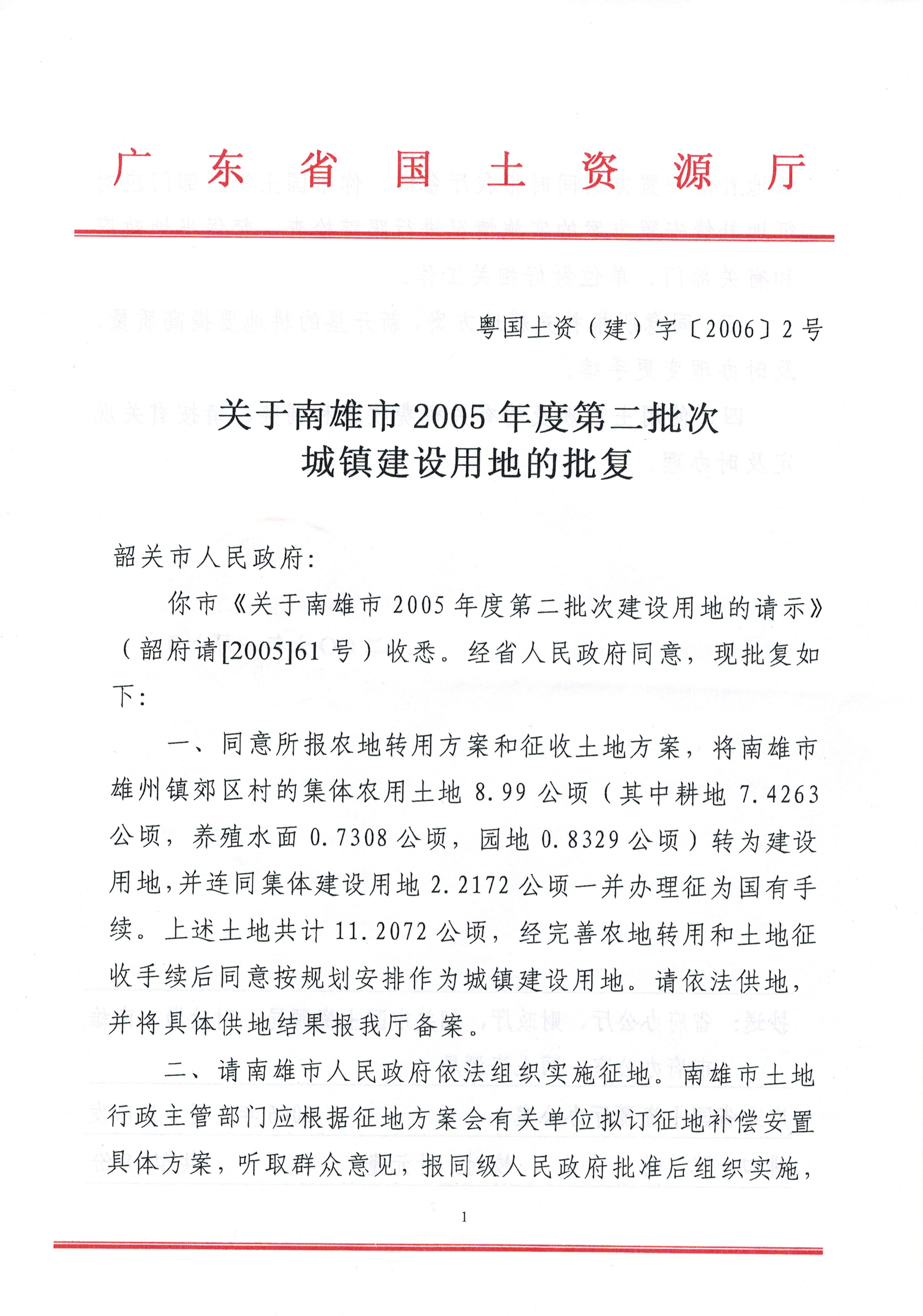 关于南雄市2005年度第二批次城镇建设用地的批复
